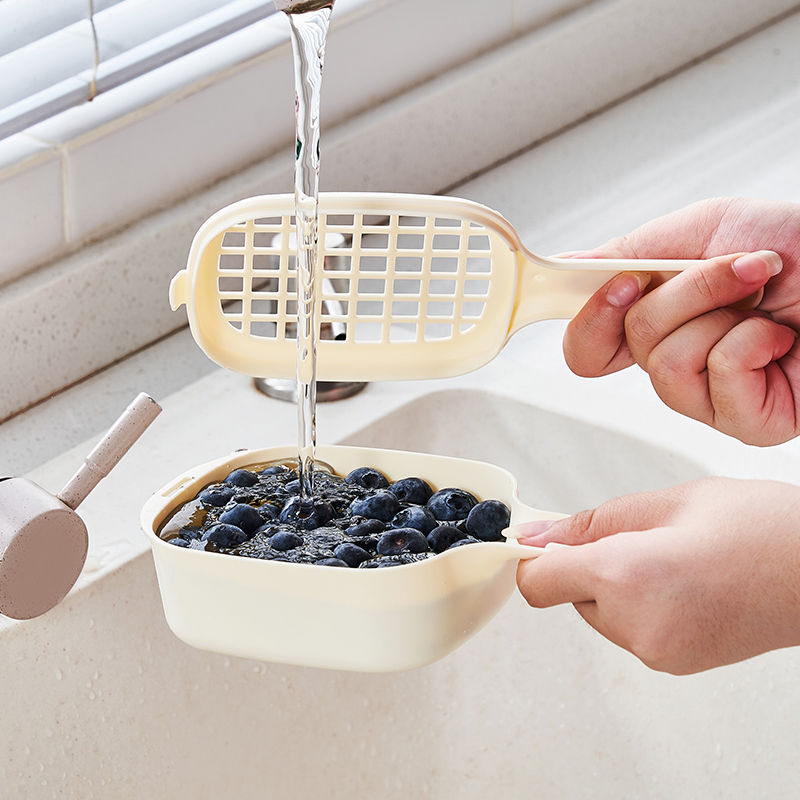 2-in-1 Handheld Fruit & Vegetable Wash & Drain Scoop - Fruit Drainer Container